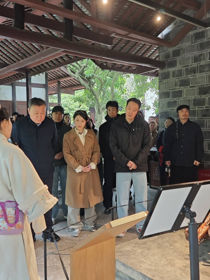 《苏堤春晓》剧组参观三苏祠。右二为辛柏青。