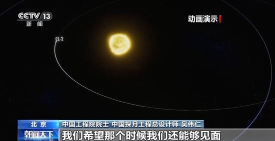 中国工程院院士 中国探月工程总设计师 吴伟仁:它(嫦娥二号)这些任务完成以后,嫦娥二号现在绕着太阳转,成了世界上第一个绕太阳转的人造行星。我们预计它2028年左右能够返回地球附近,我们希望那个时候我们还能够见面,能够探测到它的信号。