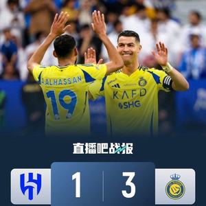 直播吧4月5日讯 北京时间4月5日02:00,沙特联第26轮利雅得新月迎战利雅得胜利的比赛在王国竞技场进行,上半场杜兰门前失良机,新月0射正,B罗助攻哈桑远射世界波破门,下半场马内助攻C罗推射破门扩大比分,同时C罗打进职业生涯第930球,布莱希头球扳回一城,杜兰造点C罗点射完成双响,最终利雅得胜利3-1利雅得新月先赛距榜首7分。