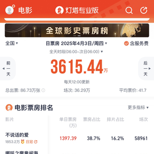 据灯塔专业版数据:4月3日,张艺兴主演的电影《不说话的爱》上映首日单日票房达到1300万元,超过已上映65天的动画电影《哪吒2》,成为内地电影市场新的单日票房冠军。目前,《哪吒2》全球总票房(含预售)已经突破155亿。