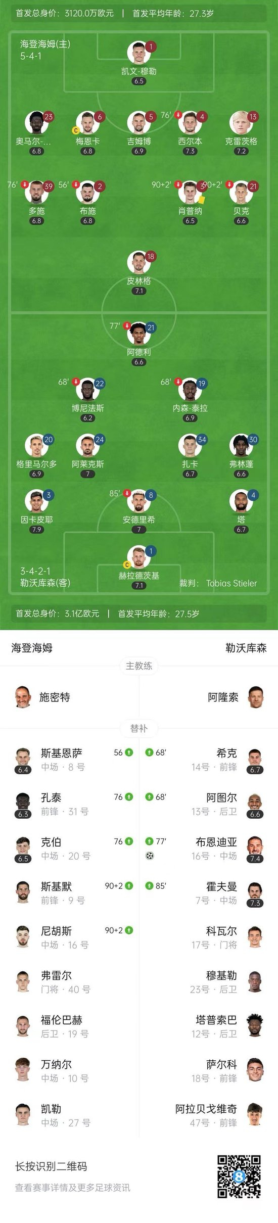 第86分钟,霍夫曼禁区线附近推射被门将抱住,勒沃库森本场首次射正。↓