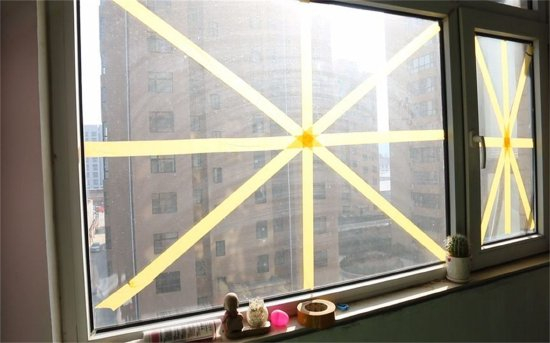 基准线定位:先沿窗框四周粘贴封闭边框,再以45°角交叉形成“米”字,确保胶带与玻璃接触面积>80%