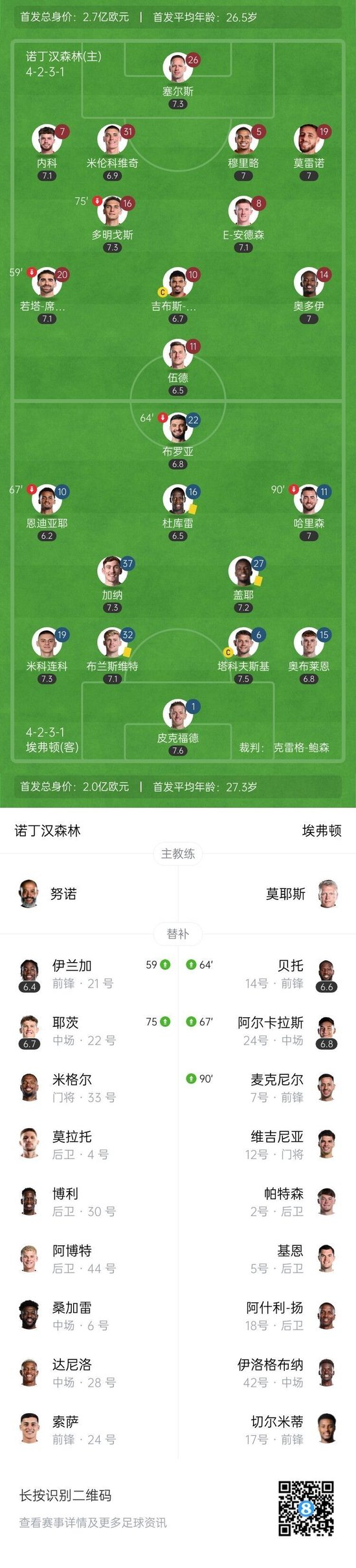 伤停补时5分钟。全场比赛结束,诺丁汉森林0-1埃弗顿。