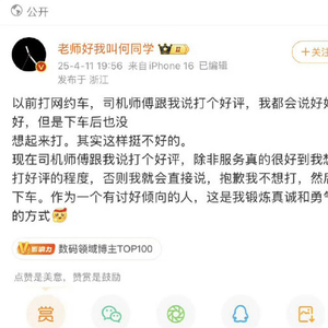 他提到,过去面对司机的好评请求会口头答应但事后遗忘,如今改为直接拒绝,并称这是克服“讨好型人格”的锻炼方式。而这引发了不少网友的反感,认为其太傲慢。