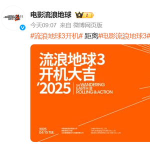 4月15日,电影《流浪地球3》官宣开机。 图据“电影流浪地球”微博。