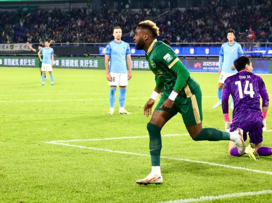 3月28日,2025赛季中国足球超级联赛第3轮,阿隆·布彭扎梅开二度,帮助浙江以4-0战胜武汉三镇。