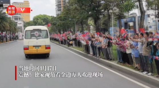 当地时间4月17日上午,国家主席习近平抵达柬埔寨首都金边。总台随团时政记者跟随车队独家记录金边万人欢迎盛况。