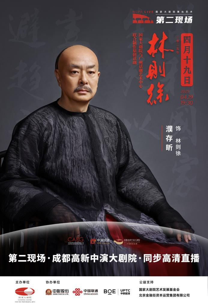 4月19日晚,国家大剧院舞台艺术“第二现场”话剧《林则徐》将在北京国家大剧院上演,并通过超高清直播、全景声系统与智能导播技术,在全国20家剧院与百余家影院同步亮相。成都观众可以在成都高新中演大剧院观看到这部史诗风格的剧作。