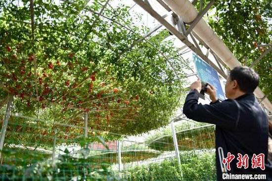 4月20日,第二十六届中国(寿光)国际蔬菜科技博览会在山东寿光开幕。图为民众在展馆内参观拍照。沙见龙 摄