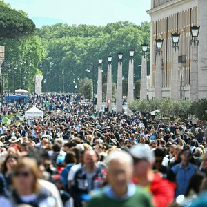 当地时间2025年4月21日,信徒和朝圣者在梵蒂冈德拉·孔西利亚齐奥街上步行,聚集在圣彼得广场,以悼念88岁去世的教皇方济各。梵蒂冈在一份声明中表示,方济各教皇于4月21日去世,前一天在复活节星期天出现于圣彼得广场,备受期待。