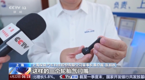 上海保隆汽车科技股份有限公司董事长兼总裁 张祖秋:这就是一个传统的、最成熟的这样的一个轮胎气门嘴,像我们一年我们生产大概要到2.6亿只的。