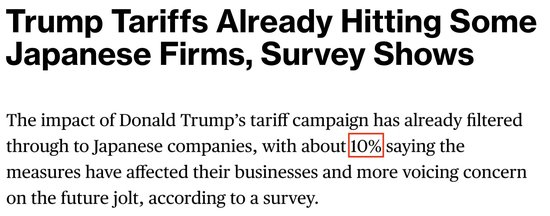 根据日本财务省22日公布的最新调查结果,约10%的日本企业表示,美国的关税措施已经直接影响到了它们的业务;更多的企业则对未来的关税冲击感到恐慌。