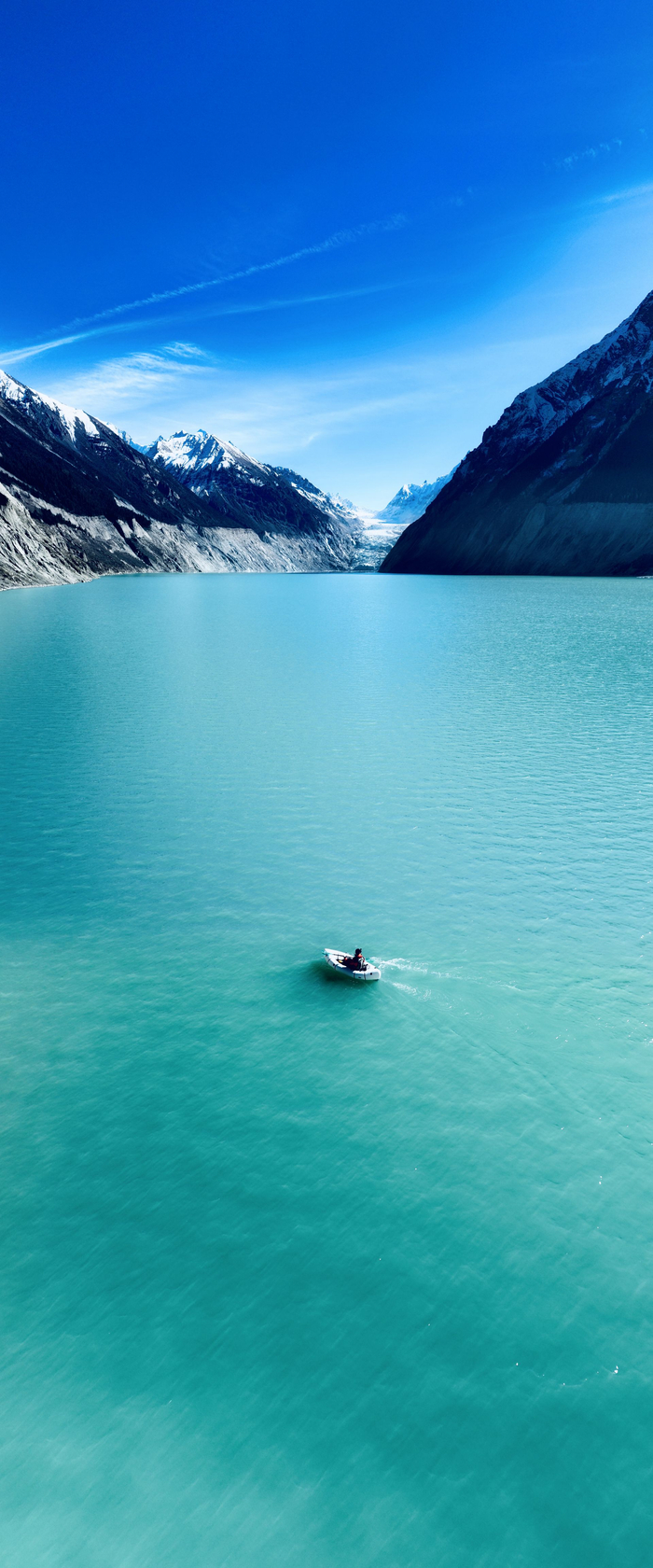 欣赏完冰洞,游客又往与村落相隔不足2公里的祥格拉冰川方向走去。冬季祥格拉山脚下的冰川在零下的温度冻结,冰层延伸到雪山脚下,一眼望去“蓝白黑”交相呼应,雄伟壮阔美不胜收。