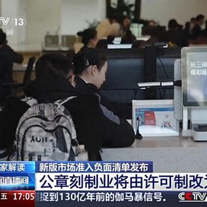 国家发展改革委经济体制与管理研究所民营经济研究室副主任 李红娟:在改革之前,公章刻制行业需要取得相关行政部门的许可才能开展业务。这意味着从业者需要提交一系列材料,经过审查批准后,才能获得许可证书。而取消许可,则意味着从业者无需再经过这一烦琐的审批流程。从业者只需要在相关部门进行备案登记,提交必要的材料,即可开展业务。程序更简化,效率更高。