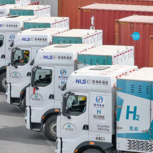 氢能重卡在陆海新通道重庆无水港等候发车 新华社记者 唐奕 摄