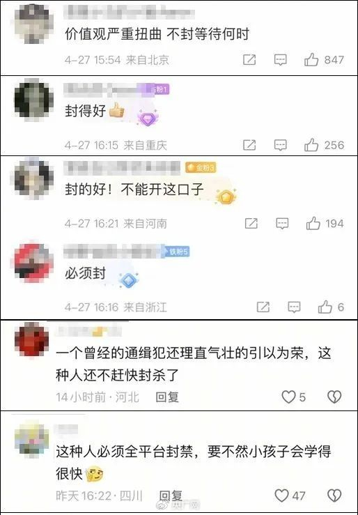 也有网友表示“支持平台封号”。