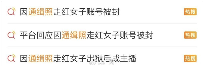 4月27日,“因通缉照走红女子账号被封”等相关话题登上微博热搜榜,引发网友热议。