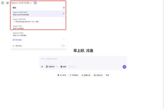 进去后,左上角选择“Qwen3”系列模型,即可体验。