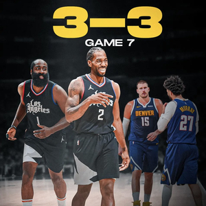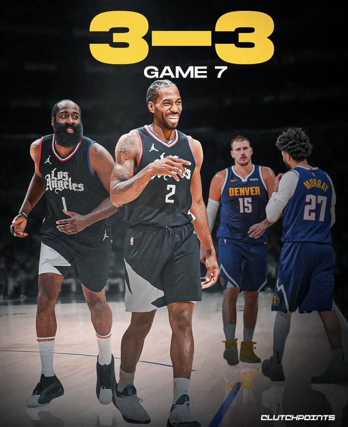 比赛开始,双方开场便陷入缠斗,比分咬得很紧,快船冲击内线拿分,掘金内外开花强势回应,穆雷延续火热手感,哈登得分助攻一肩挑还以颜色,威少连中2记三分,约基奇频频内线拿分带队反超,祖巴茨补篮得手,半场战罢快船58-57领先掘金1分。易边再战,巴图姆顶替邓恩出场,飙中三分引领快船8-0的攻势,掘金多点开花迅速回应,鲍威尔和小琼斯连续命中三分,快船获得两位数优势,末节双方大打对攻,威少活力十足,快船内外开花稳住局势,威少连续打铁,鲍威尔飙中三分,掘金连投带罚顽强咬住,关键时刻约基奇抢断哈登但自己强攻祖巴茨不中,小卡罚球杀死比赛。最终,快船111-105力克掘金,将比赛拖入抢七。