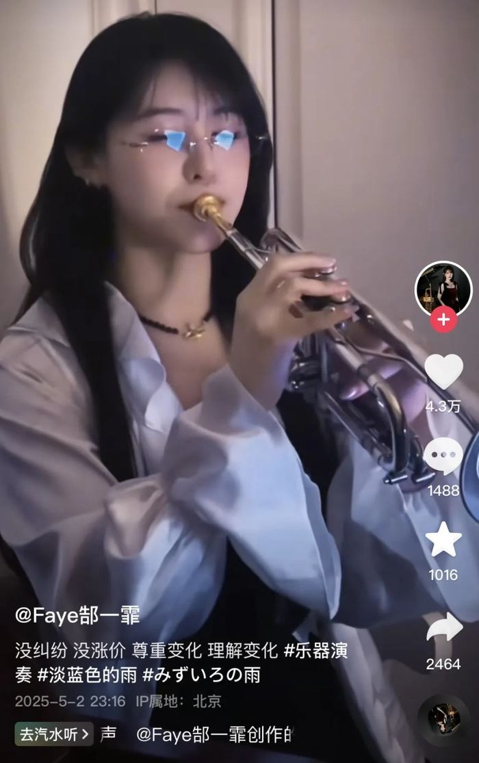 公开资料显示,郜一霏是一名00后,毕业于中央音乐学院,小号演奏家、音乐人。2025年,在《蛟龙行动》电影片尾曲《蛟龙出海》里,参与歌曲小号部分演奏。