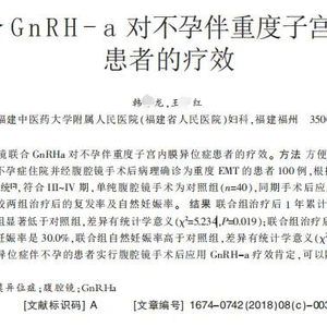 论文内文中提到,子宫内膜异位症(EMT)是指子宫内膜组织腺体和间质出现在子宫体以外部位而引起的一种病变,主要以疼痛和不孕为主要特征,不孕发生率高达40%~60%,是女性不孕症的重要原因之一。单纯的手术治疗并不能彻底清除病灶,术后复发率较高,因此术后应用促性腺激素释放激素激动剂(GnRHa)可以降低术后复发率,提高自然妊娠率。