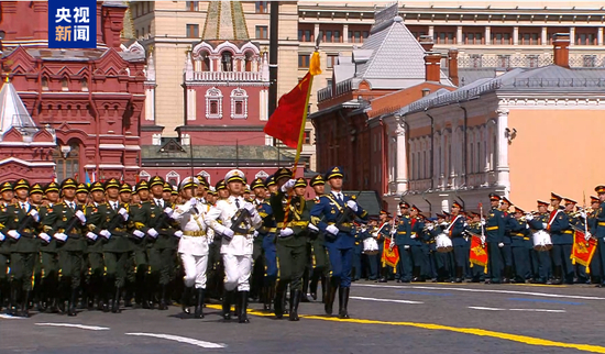 现场直击:参加阅兵式的解放军仪仗队通过红场