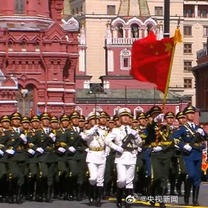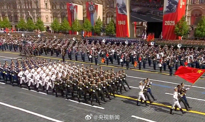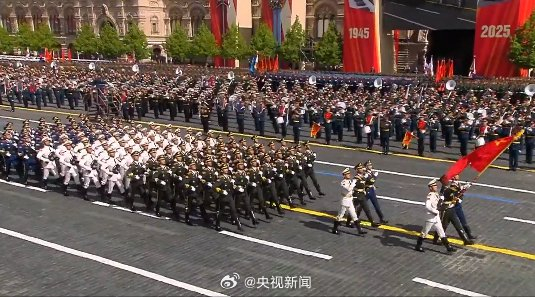 应俄罗斯国防部邀请,当地时间5月9日,中国人民解放军仪仗司礼大队仪仗分队119名官兵在莫斯科参加纪念苏联伟大卫国战争胜利80周年阅兵活动。