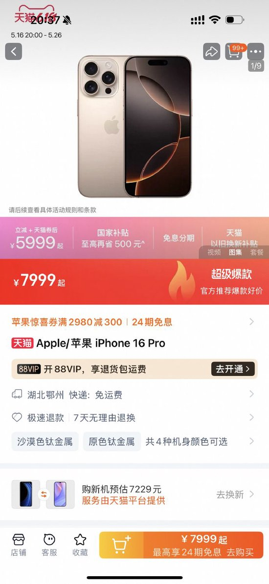 二手市场波动剧烈:iPhone 16 Pro二手价从5200元暴跌至4500元,渠道商库存积压风险加剧。
