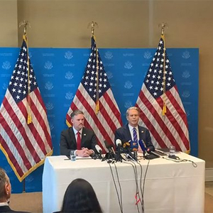 美国财政部长贝森特和贸易代表格里尔举行媒体吹风会 视频截图