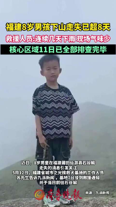 福建莆田8岁男童爬野山走失已8天,救援队:仍有生还可能(新京报)