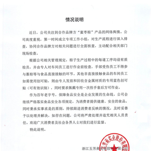 五芳斋官网发布的情况说明。 五芳斋官网截屏