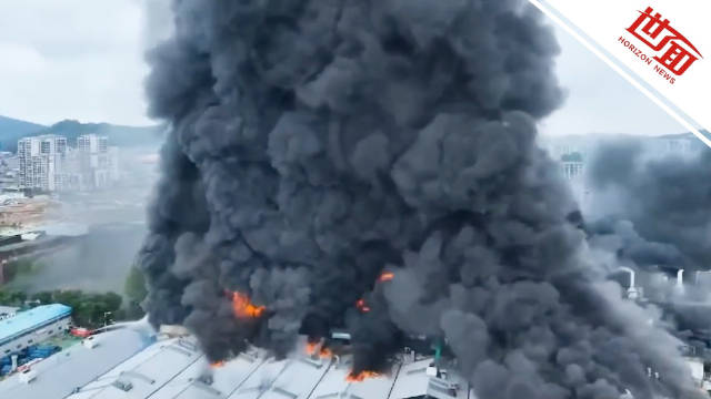 韩国锦湖轮胎工厂突发大火,火焰一度高达百米,至少要三天才能扑灭