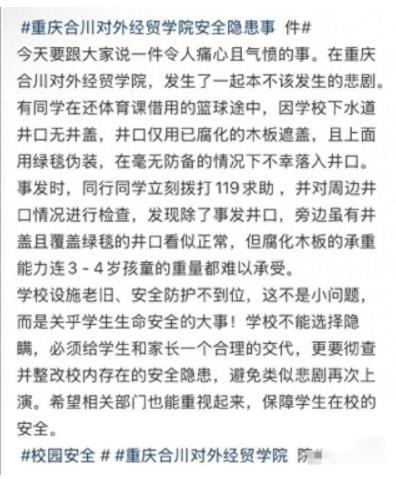 无论是校园还是城市,都不应成为暗藏陷阱的“冒险岛”。安全不是挂在墙上的标语,而是刻在心里的底线,不是应付检查的摆设,而是守护生命的屏障。只有真正将安全置顶,让责任落地,才能避免下一个无辜的生命坠入悲剧的“黑洞”。