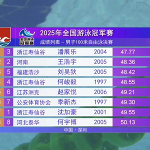 2025全国游泳冠军赛男子100米自由泳决赛,潘展乐以47秒77的成绩获得金牌!