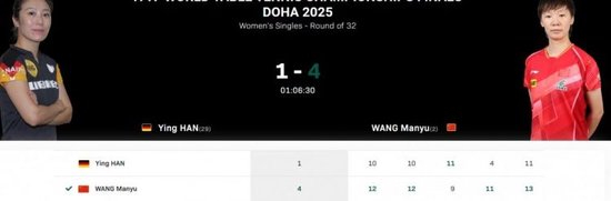 太不容易了!王曼昱苦战1小时7分钟4比1击败韩莹,晋级世乒赛16强