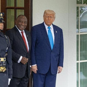 在白宫,拉马福萨对特朗普解释,“你们的经济体比我们大得多。我们只是一个小经济体,但我们在许多问题上相互依赖。”