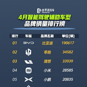 #比亚迪4月领跑智驾辅助车型销量榜# 太平洋汽车发布了4月智能辅助驾驶车型销量排行榜,比亚迪单月销量达到213325辆。 此外,根据比亚迪官方发布的4月智能辅助驾驶销量排行榜显示,比亚迪智能辅助车型截止到4月累计销量已超过48万辆,每天智驾数据生成超过3000万公里。