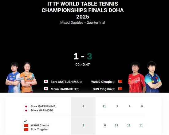 国乒混双独苗🔥王楚钦/孙颖莎3-1逆转日本组合,晋级世乒赛4强
