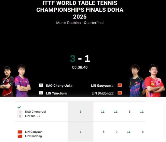 国乒男双全军覆没💥林高远/林诗栋止步8强,中国台北组合一穿二