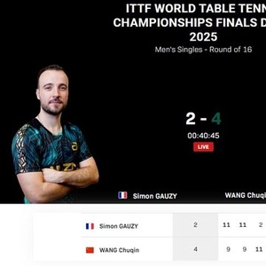直播吧05月22日讯 世乒赛男单1/8决赛,世界排名第2的王楚钦,对阵世界排名第43位的西蒙-高茨,最终王楚钦在先丢两局的情况下,连扳四局晋级8强。
