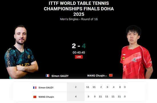 让二追四!王楚钦4-2逆转西蒙-高茨,晋级世乒赛男单8强