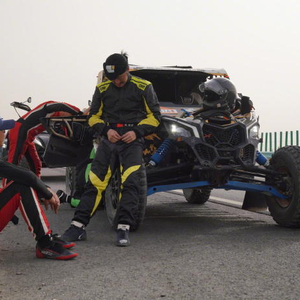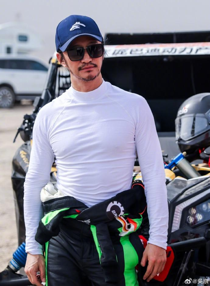 从吴京分享的照片中可以看到,他站在环塔拉力赛的荒漠赛道上,留着络腮胡的他看着比之前更瘦了一点。但是面对坏掉的车,他也只有无奈。