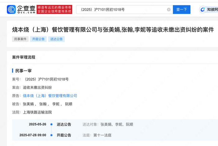 明星顶着光环开店,总能在餐饮江湖掀起惊涛骇浪。5月26日,一纸来自上海铁路运输法院的传票,将演员张翰与烧本烧餐饮公司的资本纠葛推上风口浪尖:法院送达烧本烧(上海)餐饮管理有限公司(下称“烧本烧上海)与张翰等人追收未缴出资纠纷一案开庭传票,该案将于7月28日在上海铁路运输法院开庭审理。