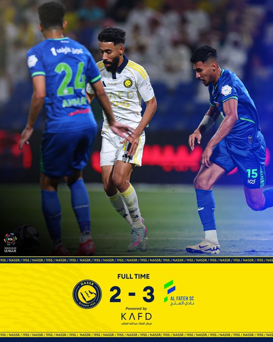 下半场补时9分钟,哈萨征服3-2利雅得胜利。