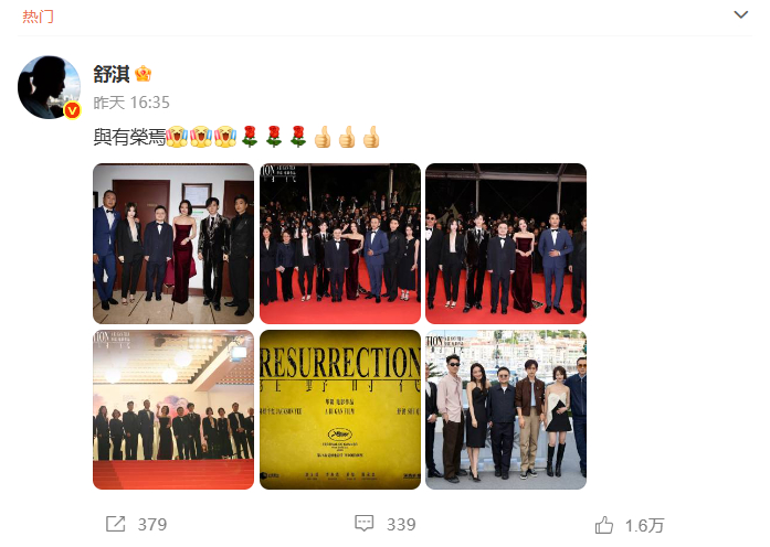 49岁舒淇主演电影戛纳拿下特别奖,晒出多张幕后美照:与有荣焉
