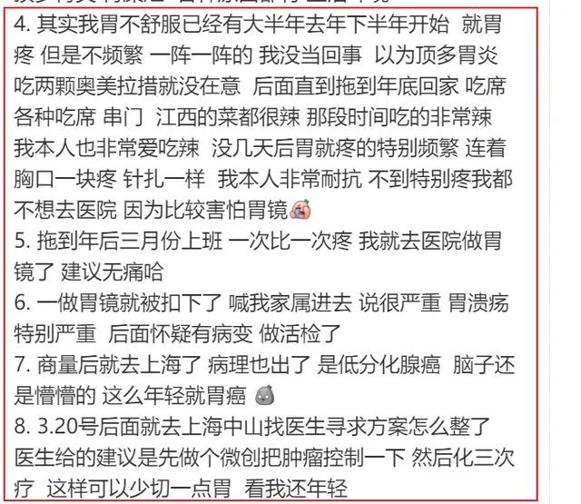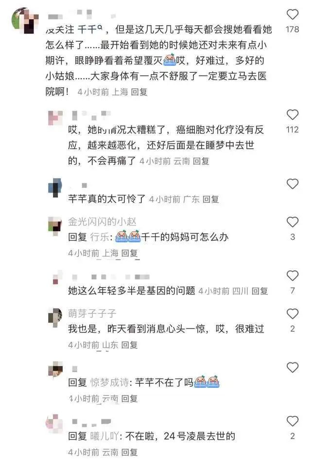 当时的她透露不知道这会不会是最后一篇,结果一语成谶,真的成为了最后一篇。她曾经在评论区报过平安,但是没有再更新继续发抗癌日记。