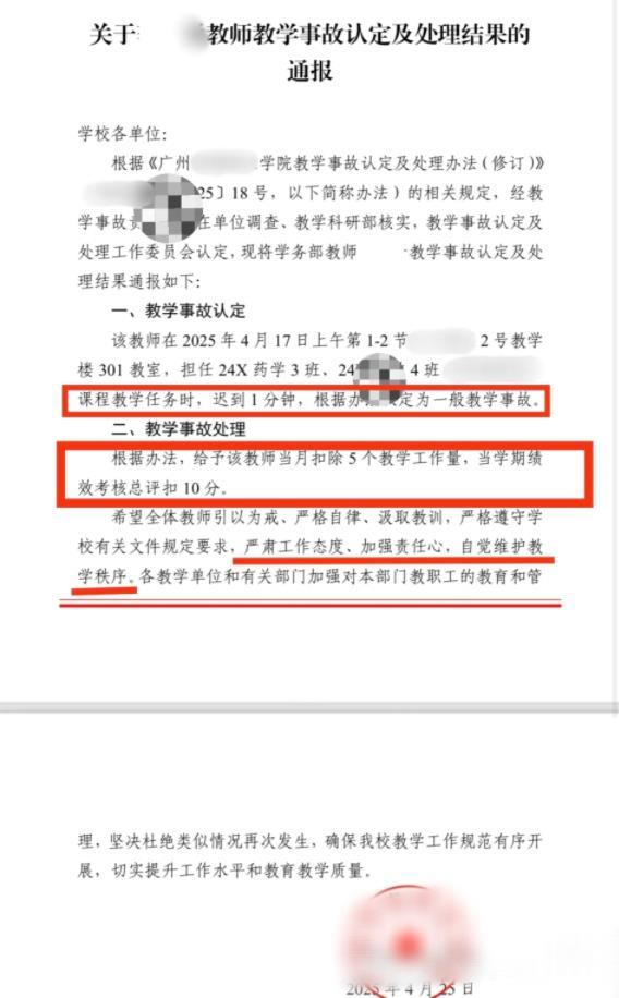 高校教师上课迟到一分钟被认定为教学事故,是不是小题大做?