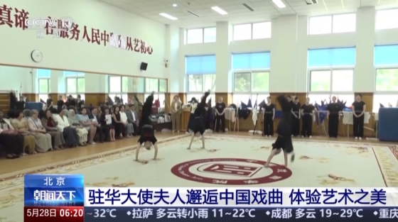 踢腿、下腰、翻跟头……排练厅里,驻华大使夫人们现场观摩中国戏曲学院学生日常基本功训练课程,近距离感受戏曲人“台上一分钟、台下十年功”的勤勉与坚守。