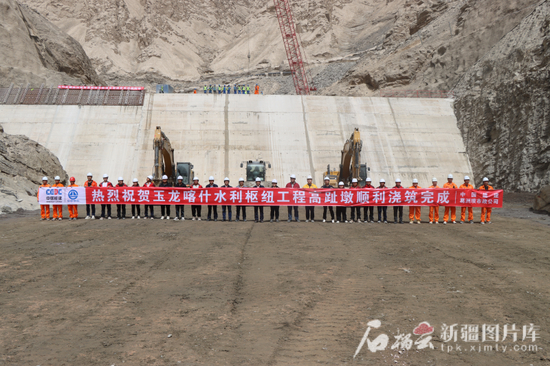 玉龙喀什水利枢纽工程高趾墩混凝土浇筑封顶。图/和田地区融媒体中心