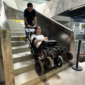 对邓红燕的采访约在她的公司,去年5月从一家工作近十年的单位离职后,她来到这家位于五道口的新单位,继续从事建筑和景观设计工作。邓红燕的工位在二楼,因为没有电梯,公司专门为她买了一台爬楼机。每天上班,她要从轮椅挪到爬楼机上,再由同事帮忙把她送到二楼工位。上班时,没特殊事情她都会待在二楼,尽量不给同事添麻烦。